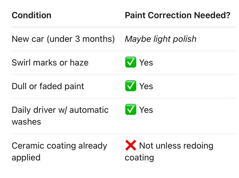 Some cars need a quick enhancement polish. Others need full multi-stage correction. We’ll walk you through options before we begin.